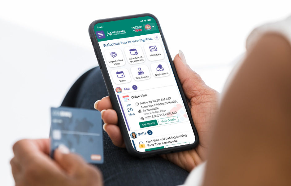 In the Nemours Children's MyChart, you get easy, secure access to your child’s health records. You can also have a video visit, search our award-winning educational content, and find other tools designed to help you keep your child healthy.