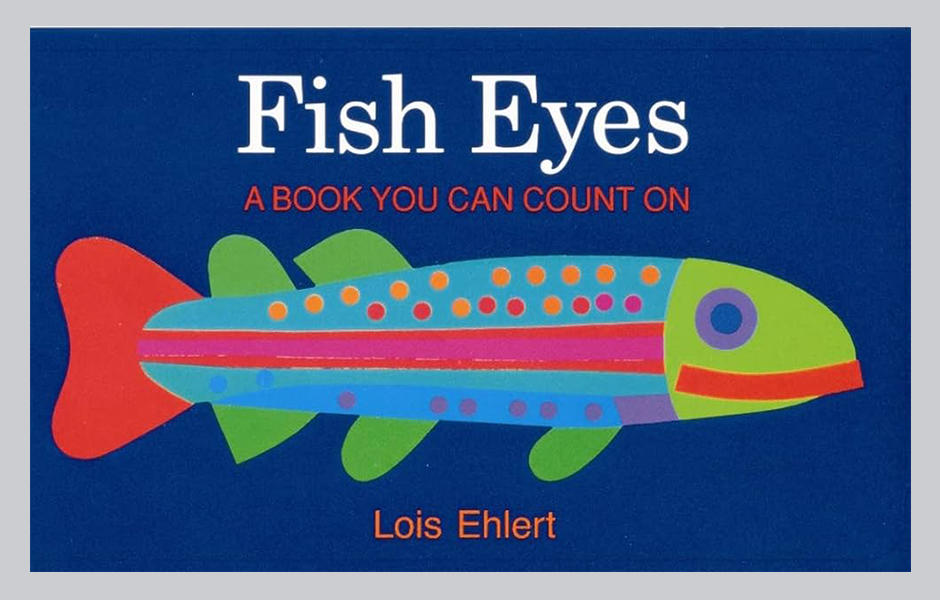 “Look at the front cover of this book. The title of this book is Fish Eyes. Can you touch the eye on this fish? Show me your eyes.”