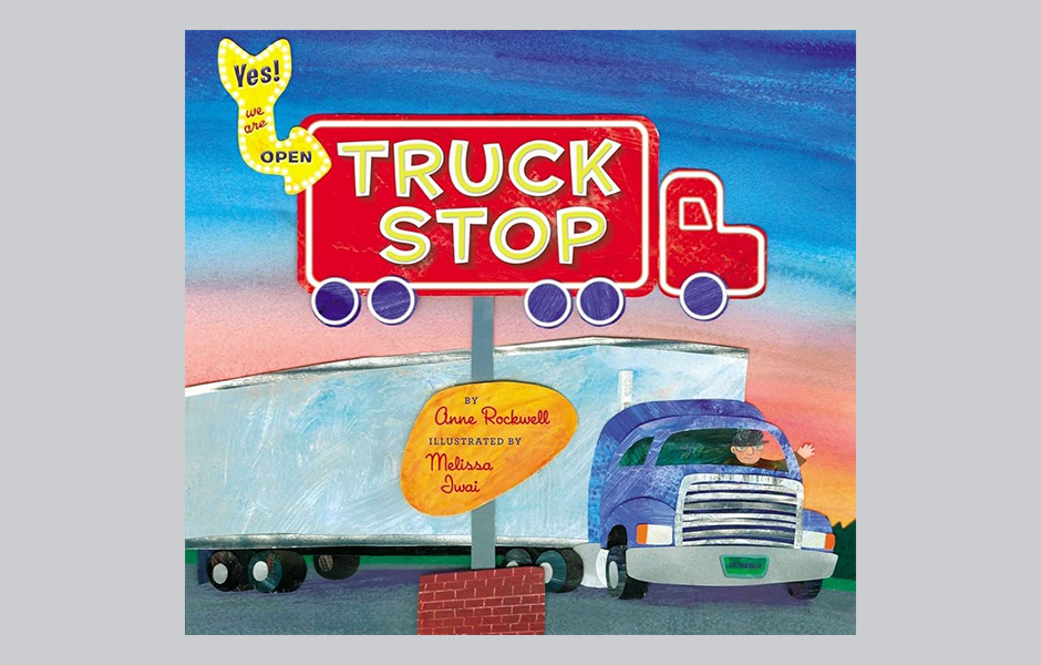 Point out words on signs. Throughout the story, there are numerous trucks and signs with logos and words on them. Point out the words or letters on the vehicles and signs. For example, on the first page of the story, you might point to and read the sign “Jim’s Diner” and tell your child that Jim’s Diner is the name of the restaurant that this family owns. Point out the CLOSED sign on the door of the restaurant and talk about how the family is coming to open their restaurant. On the next page, bring your child’s attention to the little boy changing the sign to say OPEN. By pointing out the signs and the words on them, you help your child to understand that words carry messages and meaning, an important print awareness concept.